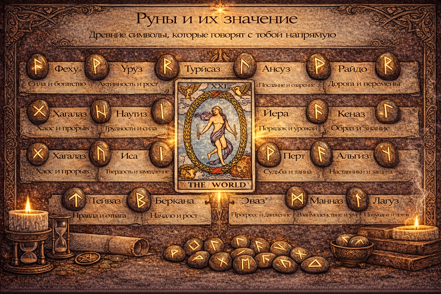 Начни с малого: выучи значения трёх-пяти рун, которые отозвались тебе больше всего. Попробуй медитировать на их форму. Сделай простой расклад. Постепенно этот древний язык станет твоим.